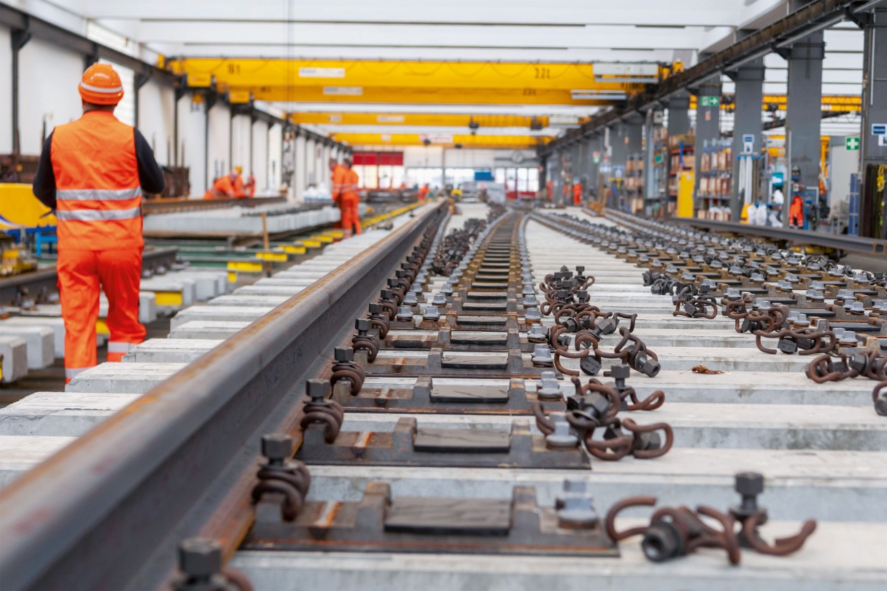 Produciamo ogni anno oltre 550 scambi, ciascuno dei quali viene progettato con la massima precisione e assemblato nel Centro per la tecnica ferroviaria. Lo scambio premontato comprende anche chiavistellamento e azionamento elettrico, nonché eventualmente il riscaldamento (su richiesta).